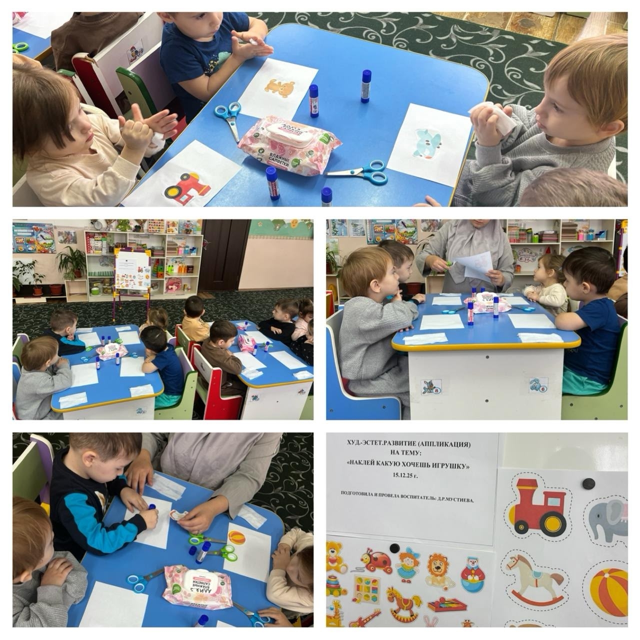 В МБДОУ «ДЕТСКИЙ САД» «ИРС» «СТ КУРДЮКОВСКАЯ» с воспитанниками младшей группы «РАДУГА» проведено занятие по «Художественно-эстетическому развитию» (аппликация ) на тему: «Наклей какую хочешь игрушку». Цель:Упражнять в правильных приемах составления ...