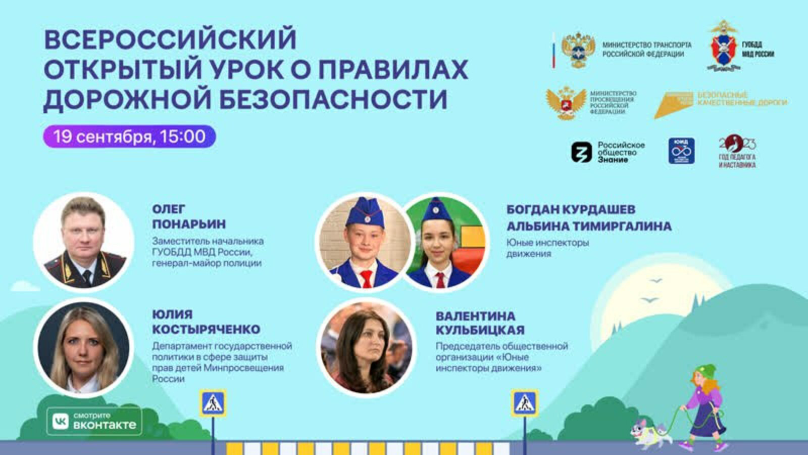 Всероссийский открытый урок о правилах дорожной безопасности для школьников состоится 19 сентября