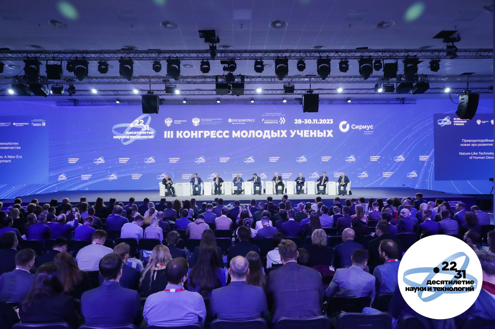 29.11.2023Природоподобные технологии как новая эра развития человечества Деловая программа III Конгресса молодых ученых открылась сессией «Природоподобные технологии: новая эра развития человечества». Ведущим сессии выступил Президент НИЦ «Курчатовский институт» Михаил Ковальчук. Начиная дискуссию, он отметил, что обеспечение устойчивого развития современного общества и сохранение мировой цивилизации является одним из глобальных вызовов настоящего времени. Михаил Валентинович напомнил, что 18 апреля 2017 года по инициативе Президента Российской Федерации Владимира Путина в НИЦ «Курчатовский институт» было проведено совещание по вопросу природоподобных технологий (ППТ) и создании сети научных учреждений для работы в этой сфере. «Тогда были созданы «Роснано» и Фонд перспективных исследований. Несмотря на то, что наша наноинициатива шла в хвосте разработок США, Китая и Японии мы пошли своим путем, понимая, что устойчивое развитие, это, прежде всего, ресурсы», - подчеркнул Михаил Ковальчук. В целях обеспечения технологической независимости и конкурентоспособности страны, достижения национальных целей развития и опережающего развития природоподобных технологий 2 ноября 2023 года был подписан Указ Президента России №818, а НИЦ «Курчатовский институт» определен головной научной организацией в этой сфере. Указ констатировал, что идет создание нового технологического уклада. «На сегодня мы самая богатая страна в мире – у нас есть все, и мы должны быть сильными, чтобы сберечь и сохранить для будущих поколений достаточные и пригодные к использованию различные материальные ресурсы (вода, продовольствие, энергия и др.)», - заявил спикер. Он считает, что для этого необходимо идти путем последовательного замещения существующих технологий природоподобными технологиями, которые не наносят вред окружающему миру. Это позволит восстановить нарушенный человеком баланс между биосферой и техносферой. «Мы можем перейти к безресурсному существованию. Такой подход был озвучен Президентом Российской Федерации Владимиром Путиным на пленарном заседании 70-й сессии Генеральной Ассамблеи ООН 28 сентября 2015 г. в Нью-Йорке», - завершил приветствие Михаил Валентинович. Директор Института биоорганической химии имени академиков М.М.Щемякина и Ю.А.Овчинникова Российской академии наук Александр Габибов считает, что «сегодня требования к ученым значительно повысились, поскольку от натурфилософии в начале пути человечество перешло к узкой специализации, а сегодня опять возвращается к интеграции и синтезу, чтобы правильно подсмотреть и понять, как это делает природа, в том числе и на клеточном уровне. Эволюция показала, что в исследованиях нужен синтетический подход». Министр науки и высшего образования Российской Федерации Валерий Фальков отметил, что в «основе природоподобных технологий лежат размышления и знания о том, как устроена живая природа. Эти знания междисциплинарны, т.к. природа едина. Необходимо объединять усилия партнеров и научно-образовательных учреждений в этой сфере». Министр обозначил, что «для этого реализуется задача о создании федеральных университетов и больших научно-образовательных холдингов. Также требуется выработать принципы и критерии отнесения разрабатываемых технологий к ППТ. Кроме того, необходимо провести о